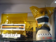 用法 火場殺手之一--煙,濃煙逃生面罩為逃生工具之一,此張照片攝於台北市內湖防災科學教育資料館