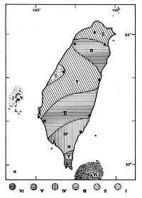 1959年8月15日恆春地震等震度圖(根據呂新民(1960)資料重繪)。