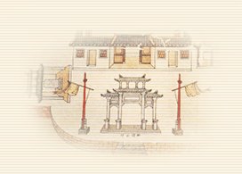 它矗立在風神廟廟口,清乾隆四十二年(西元一七七七年)臺灣知府蔣元樞重修宮廳、廟堂,在廟左增建公館,廟前建亭坊,做為恭迎聖旨、迎送洗塵餞別之處。