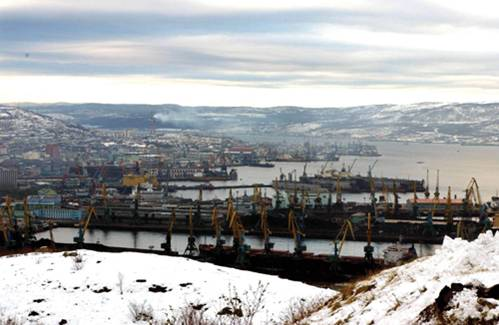 上圖示是俄羅斯在北極圈內冬季不結冰的海港---莫曼斯克港