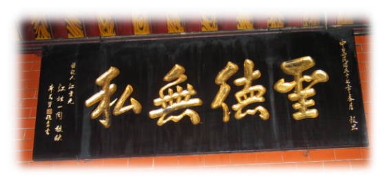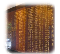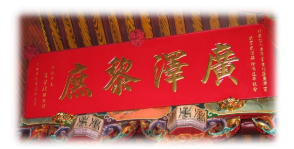 對聯: 「對聯」原自於春聯,對聯的內容,可分為故事、應制、廟祀、廨宇、勝蹟、格言、佳句、挽詞、集句、集字、雜綴、諧語等十二類。 對寺廟而言對聯的內容主要有: 1、歌誦奉祀的神祇 2、說明寺廟的沿革