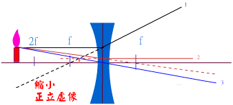 1.平行主軸的光經透鏡發散折射但其反向延長線必通過同側焦點