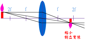 異側,兩倍焦距處 |