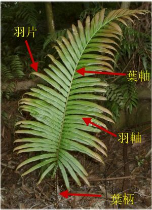典型的蕨葉多呈羽狀葉,可分為葉柄及葉片兩部份 |