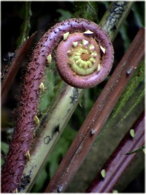 蕨類的幼葉呈捲曲狀 |