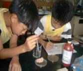 鹽酸滴在石灰岩上就會產生大量的氣泡,實在太好玩了,剛開始京萱還有點怕怕,後來她比誰都喜歡滴。不過我覺得鹽酸的腐蝕性很強,不小心滴到可不是好玩的,也難怪老師在三提醒我們要小心。- --彙傑-- |