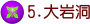4涼亭往5大岩洞是上坡路段,步道多石灰岩裸露,兩旁石灰岩和砂頁岩互層錯雜分布,常見樹根伸展至路面。大岩洞有幾塊光禿禿的石灰岩璧,岩壁上坑洞大又多,沒有植物生長,可能是酸雨沖刷掉砂頁岩,又淋蝕石灰岩造成的結果。