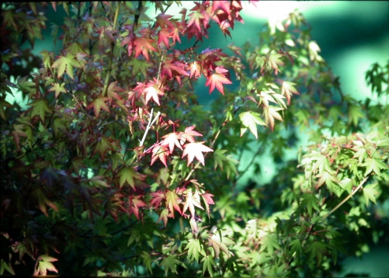 些植物葉片在還沒有老化之前,就已經是紅色、黃色或其他顏色,這是因為葉子內有葉綠素之外,還有葉黃素、胡蘿蔔素,當這些色素如果比葉綠素還多時,葉子就會呈現黃、紅、紫、橙等色彩;如變葉木、彩葉草、楓香等。菩提樹、樟樹等的嫩葉中葉綠素較少,而呈現出紅色系。