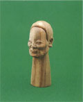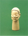 定出目、耳、口、鼻五形的位置。以砂布將粗胚凹凸不平的地方磨平。