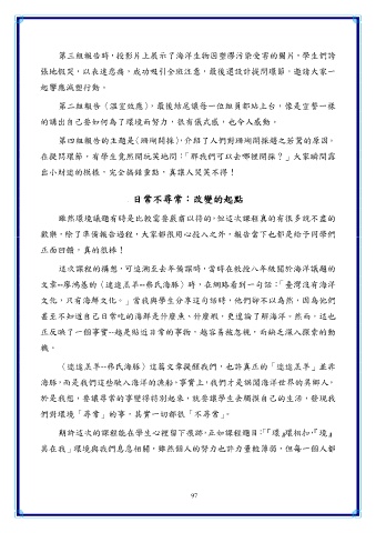 第三組報告時,投影片上展示了海洋生物因塑膠污染受害的圖片,學生們誇