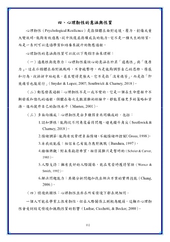 心理韌性的意涵與性質可以從以下幾個方面來理解: