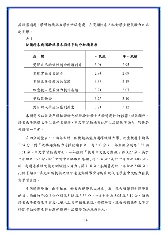 一年組之 2.92 分;於「面對中文挑戰之意願」得 3.18 分,高於一年組之 3.03 分 ;