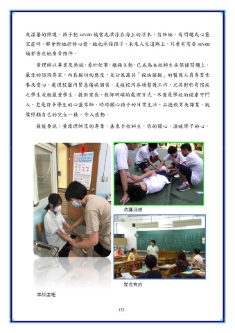 養及愛心。處理校園內緊急傷病個案,支援校內各項醫護工作,尤其對於有宿疾
