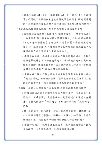 o 常設性的反思提問:在使用 AI 輔助學習後,引導學生反思: