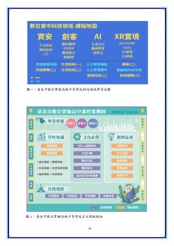 圖一:臺北市數位實驗高級中等學校科技領域學習地圖 圖二:臺北市數位實驗高級中等學校五大課程模組 59