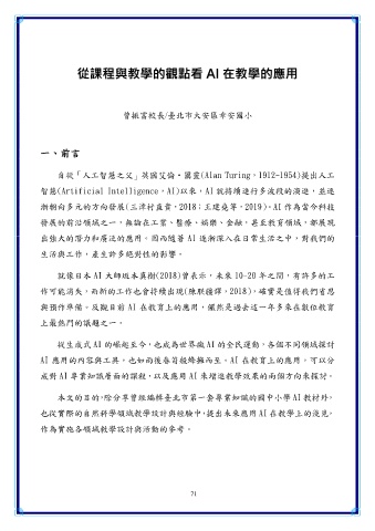 漸朝向多元的方向發展(三津村直貴,2018;王建堯等,2019)。 AI 作為當今科技